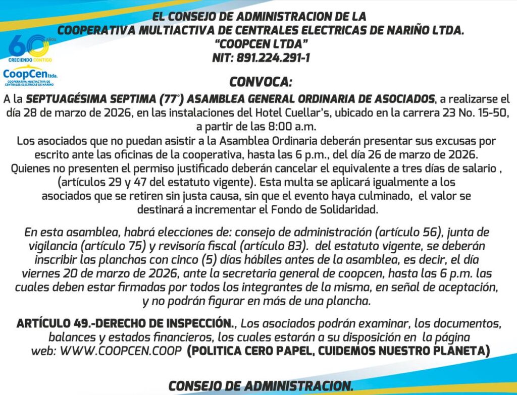 SEPTUAGÉSIMA SÉPTIMA (77°) ASAMBLEA GENERAL ORDINARIA DE ASOCIADOS